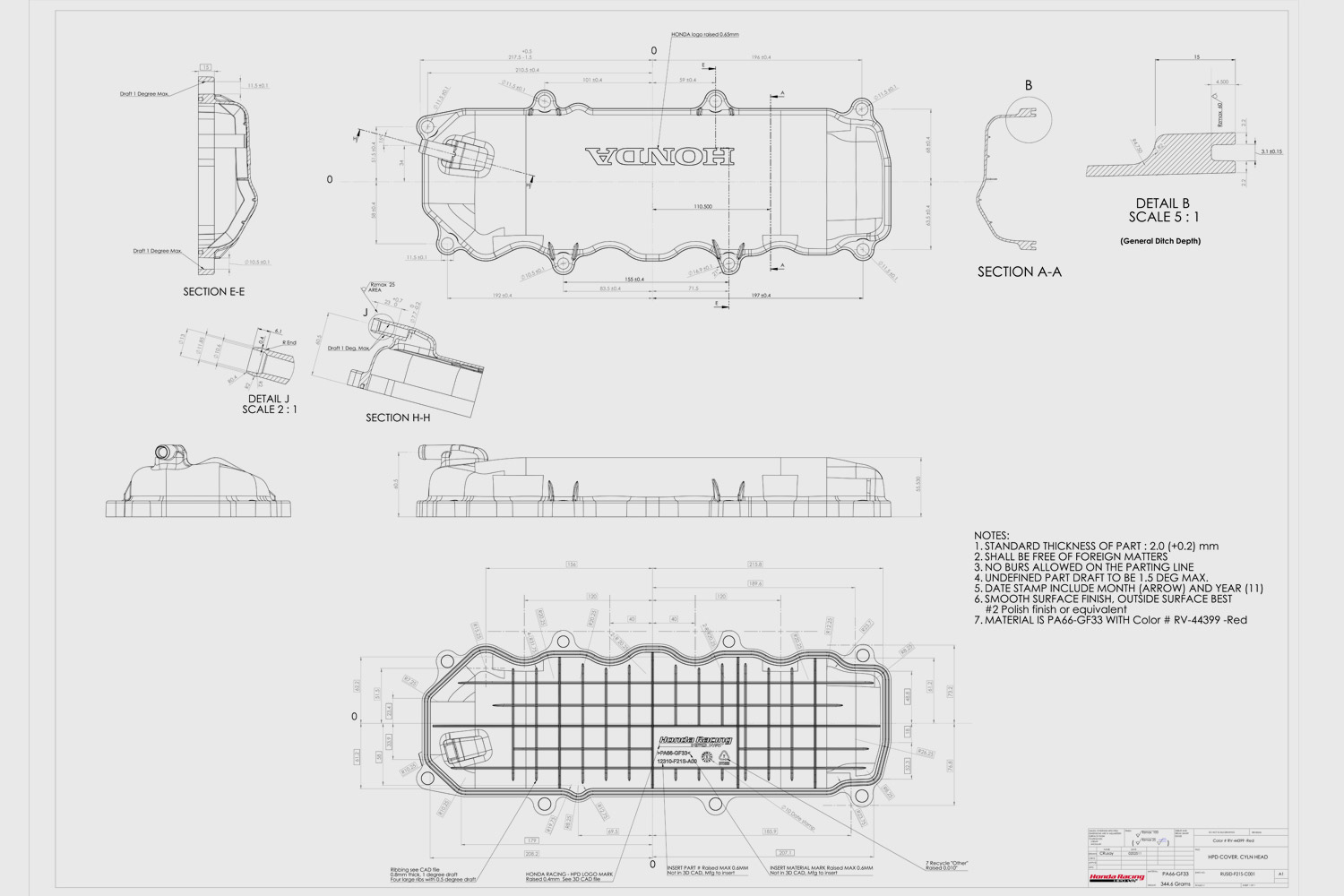 HPD was in development of an engine for open-wheeled racing in the Formula Ford category. Their new engine was a modification of the Honda Fit engine and needed a cam cover to account for a dry sump oil system.